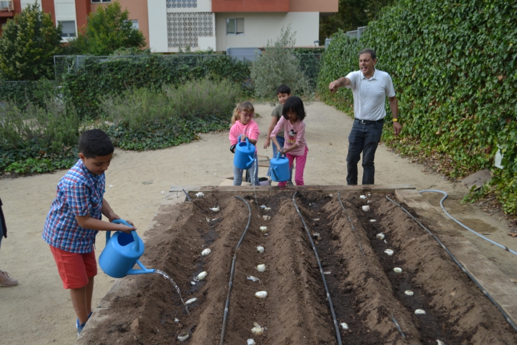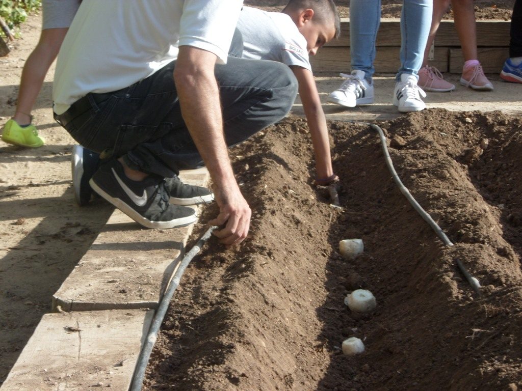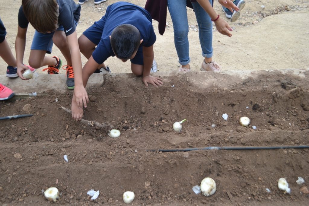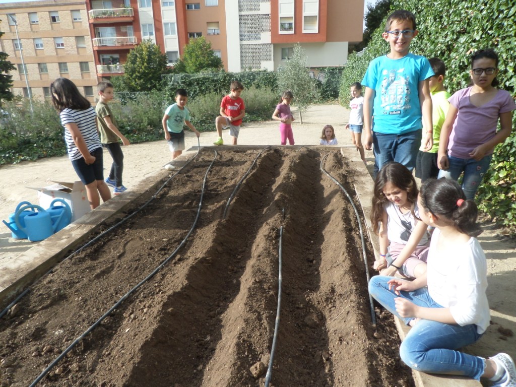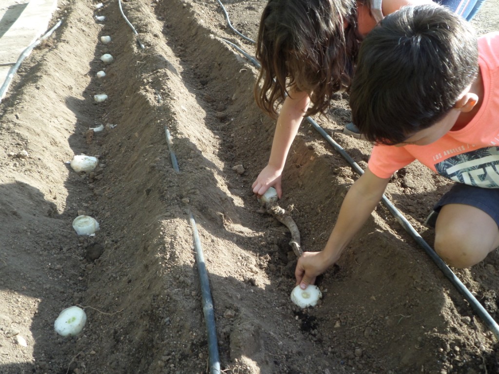 La setmana passada els alumnes de 3r vam plantar cebes blanques que es convertiran en  calçots.
