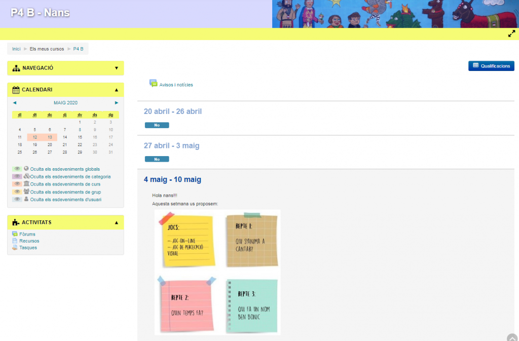 A continuació també us deixem una petita mostra del nostre funcionament mitjançant la plataforma Moodle durant aquests dies de confinament. Si cliqueu sobre la imatge podreu explorar una mica més.