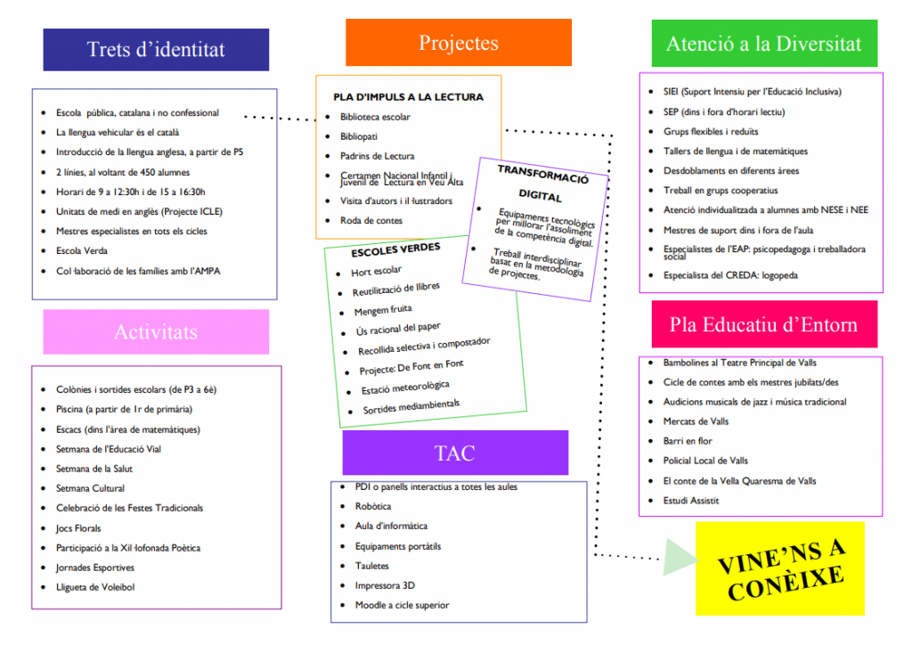 Fa un temps enrera, teníem tota la il·lusió centrada a poder-vos rebre a la nostra escola per tal que, vosaltres, pares, fills, a vegades avis i fins i tot oncles, poguéssiu conèixer de primera mà totes les nostres instal·lacions, projectes, objectius, maneres de fer i de treballar… volíem transmetre-us tota l’energia amb la qual, cada dia, la nostra escola desperta i tira endavant: els somriures, l’esforç, el treball, compartir, crear, comprendre, estimar i com creixem junts/es!