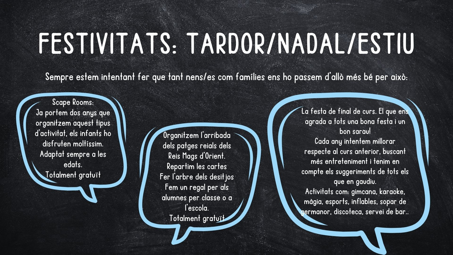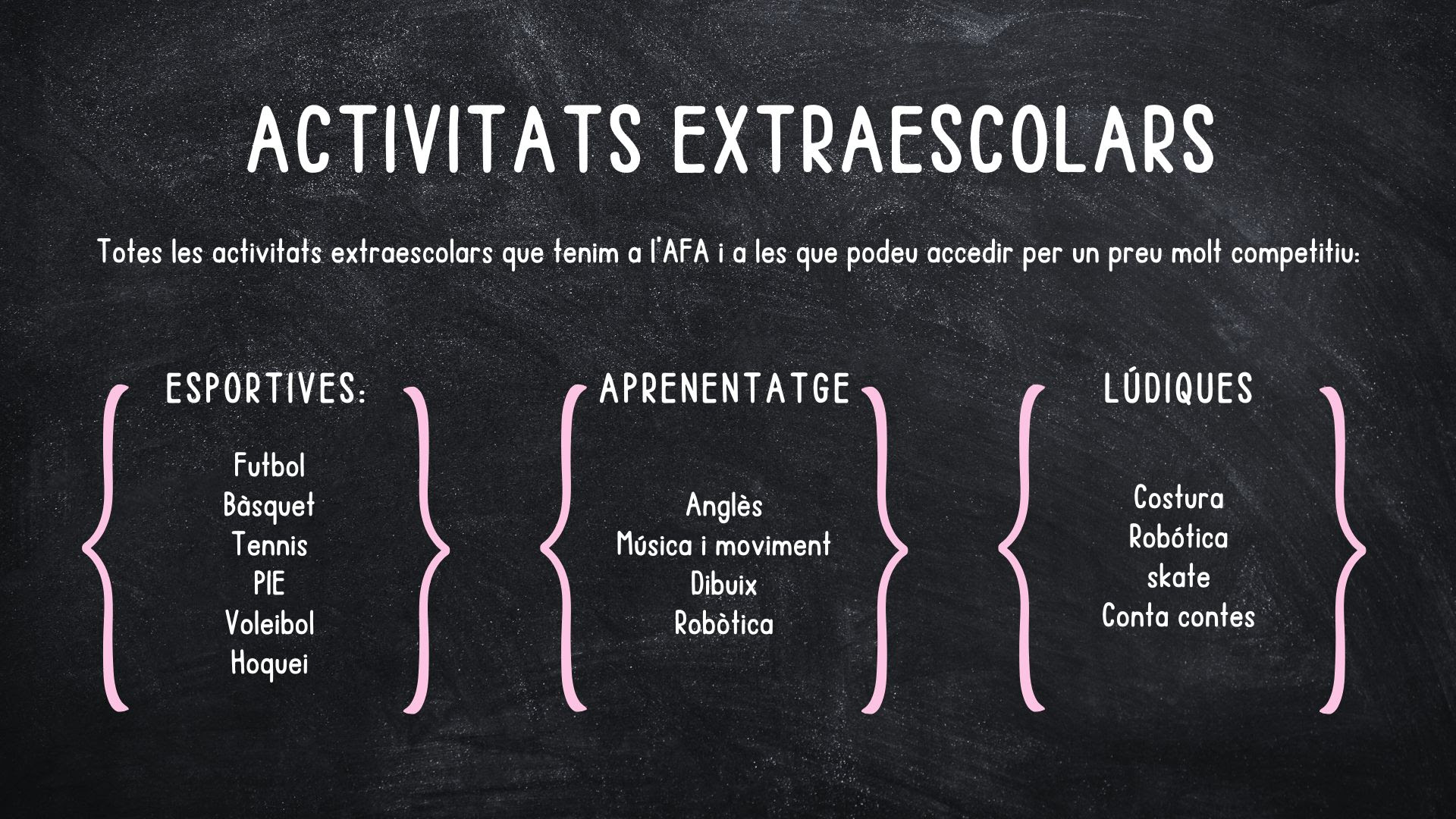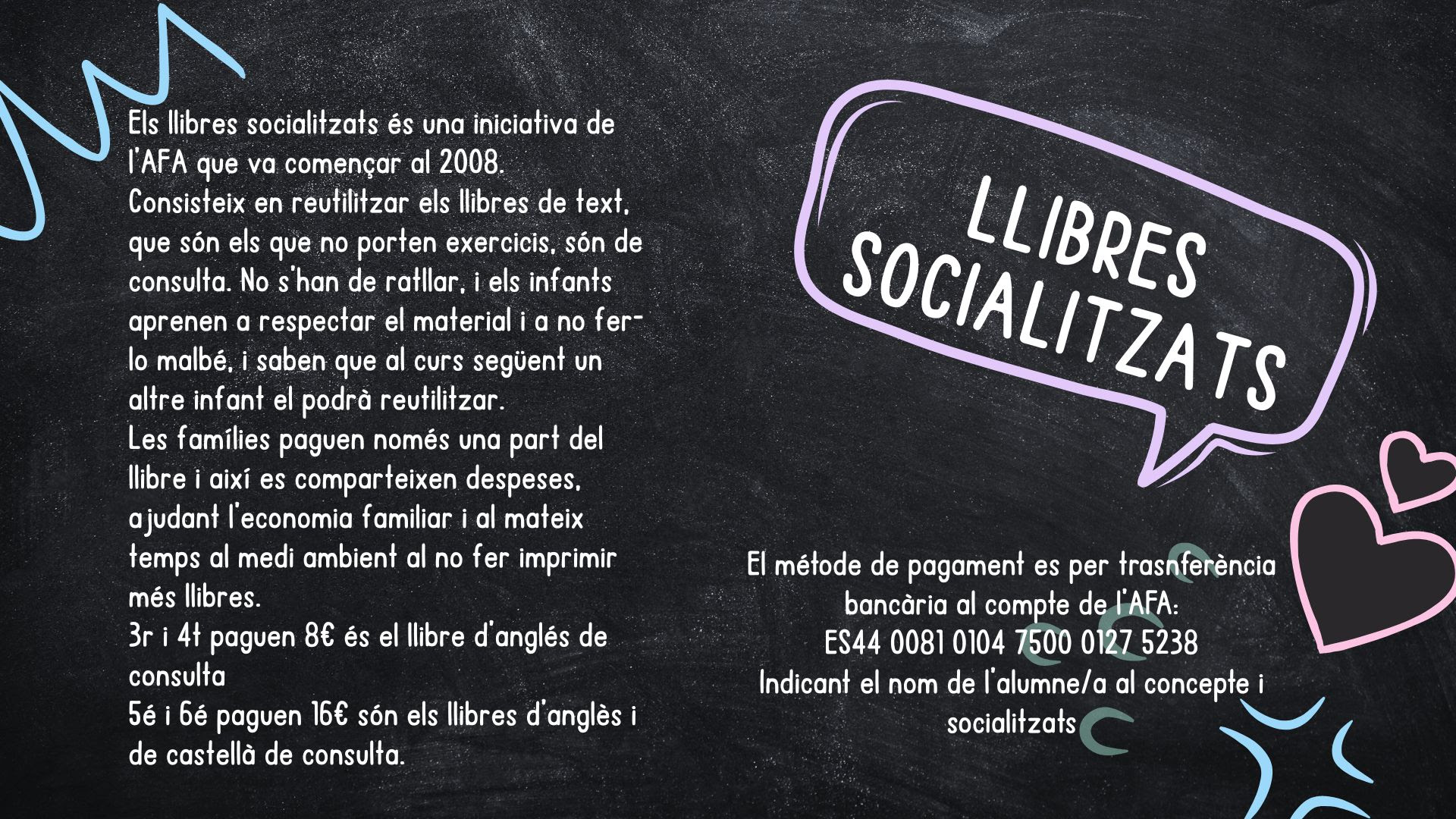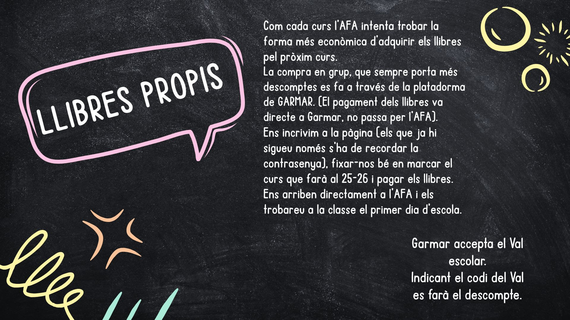 Us animem a formar part de l’AFA de l’escola. Som un grup de famílies compromeses amb l’educació i el benestar dels nostres infants, i treballem colze a colze amb l’escola per fer-la una mica millor cada dia.