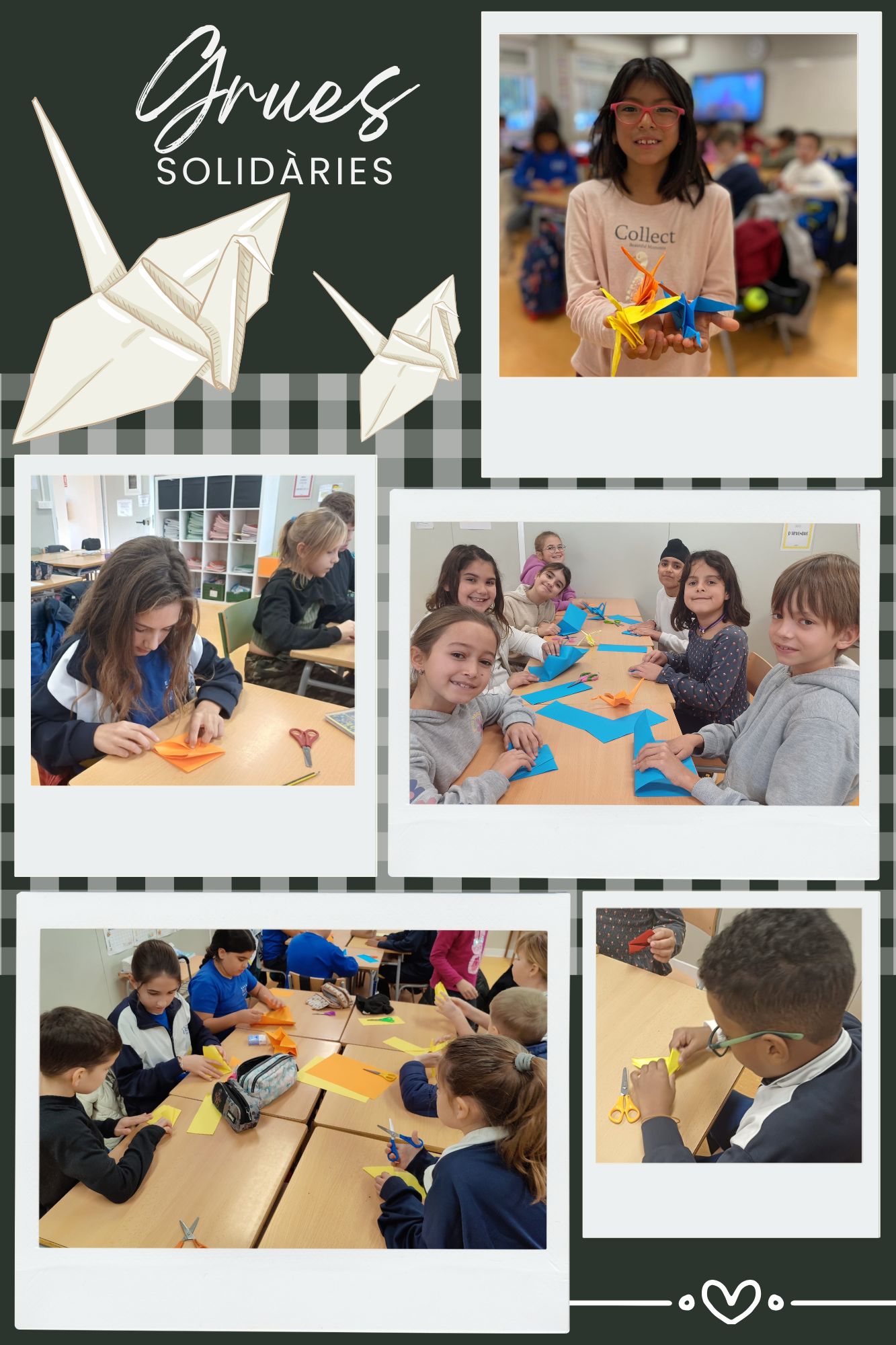 Els nois i noies de 4t ens hem sumat als companys de cicle superior a fer grues d’origami.