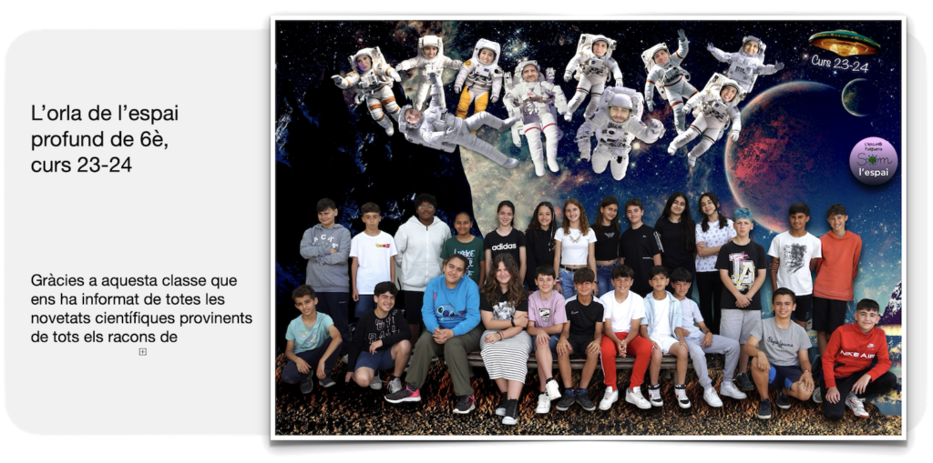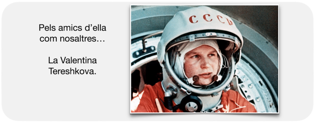 L’espai Aquest any ens enlairem cap a l’univers… amb la Валенти́на Влади́мировна Терешко́ва. La Valentina Vladímirovna Tereshkova. Com es van crear els planetes? Un carnaval galàctic! Del que tothom en va resultar guanyador!