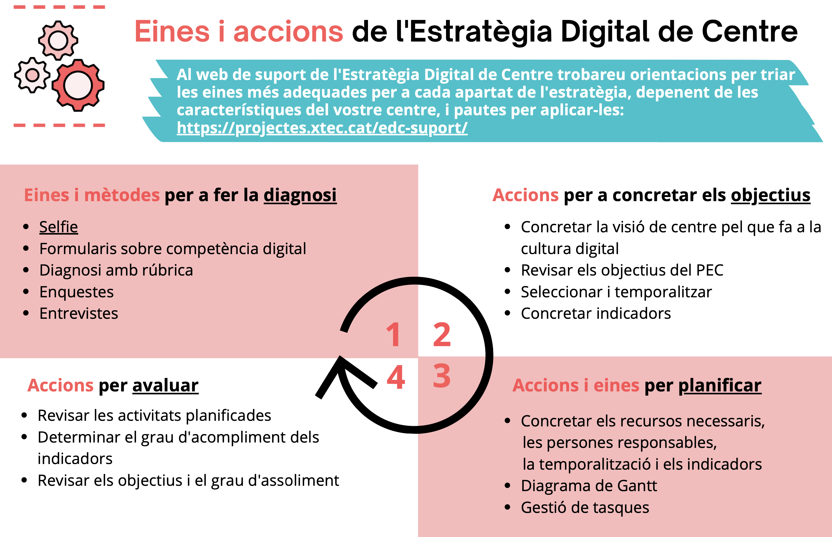 Recordem que l’EDC és un pla estratègic per a la consecució d’uns objectius, a través d’unes accions, que són el resultat de fer una diagnosi del centre; la qual ens ha donat informació sobre el camí a seguir: