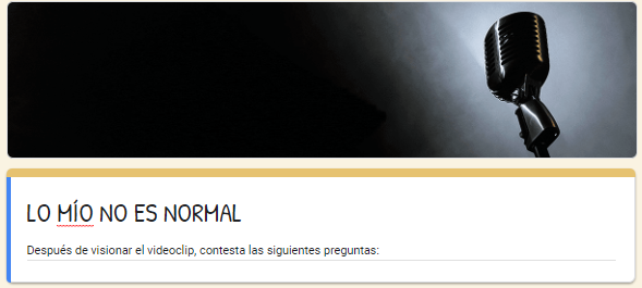16/10/20Después de haber trabajado en clase la canción “Lo mío no es normal” a través de su letra y videoclip, os dejamos un cuestionario con algunas preguntas. Pero antes, podéis volver a escuchar la canción, leer sobre la biografía del protagonista para poder recordar todo con detalle y contestar mejor las preguntas.