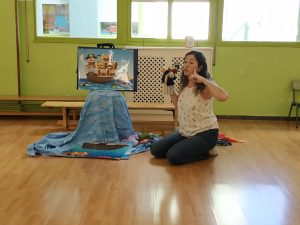 Ha explicat un conte de pirates i animals del mar i ho ha relacionat amb les diferents emocions: alegria, por, ràbia, amor, tristesa…