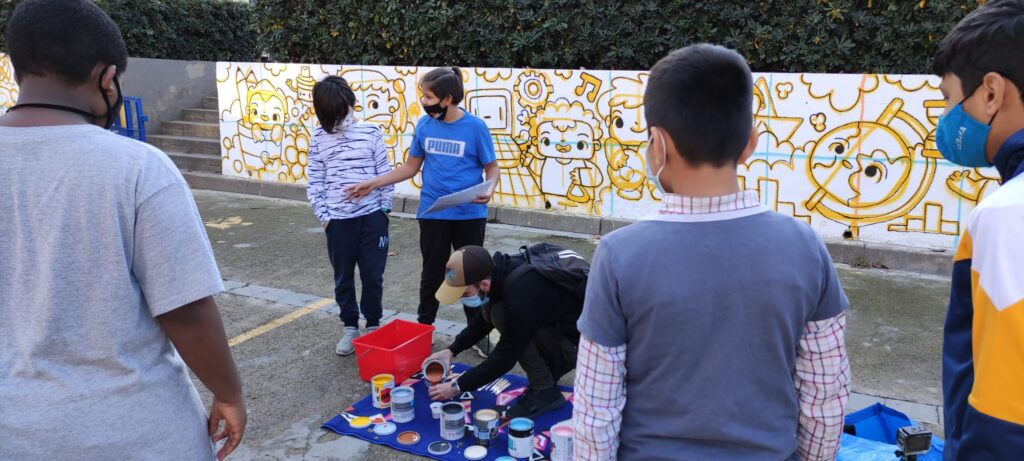 Aquestes setmanes, els alumnes de 5è i 6è juntament amb l’artista Garbi KW (@garbikw) hem dissenyat i participat en la creació del nou mural de l’Escola. El podeu veure si aneu a l’entrada del carrer Arquitectura.