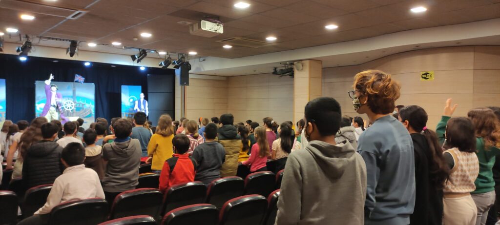 Last Friday we went to the theater by bus to see “Treasure island”. We were there for 1 hour. It was funny but a little difficult in some parts. We enjoyed a lot when we had to scream “look out” and when we asked some questions to the actors in English. Here you have some