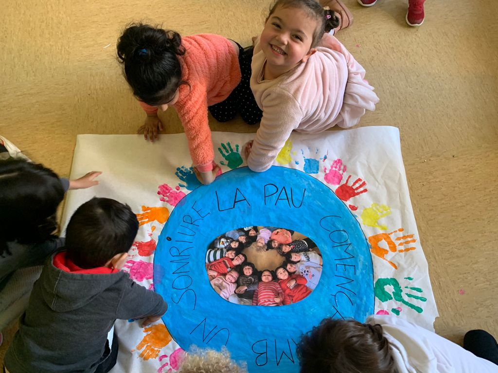 A més, entre tots hem posat exemples quotidians i pròxims per a ells sobre el significat de La Pau com ara: ser amics, compartir les joguines, ajudar als altres, demanar perdó, evitar els conflictes, escoltar-nos, donar-nos abraçades, ser agraïts i somriure…