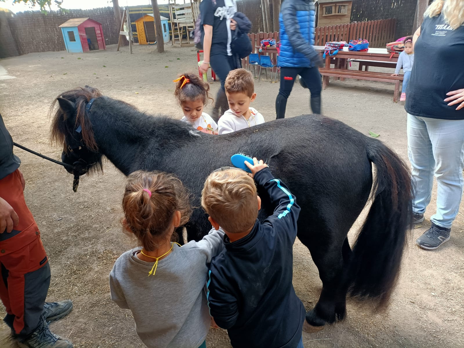 El dimecres 20 d’octubre, vam anar a l’hípica “Les Tanques” de Viladecans i vam passar un dia GENIAL!!! Quan vam arribar ja ens estava esperant l’Anna, la grangera, per presentar-nos a tots els seus animals. Vam veure cavalls, una vaca, gallines, ànecs, conills, ovelles, cabretes, porcs vietnamites… Vam aprendre moltes coses de tots aquests animals. Després de fer la visita a la granja, ens tenien preparada una SORPRESA!, fer una volta amb un poni que es deia “Conguito“.