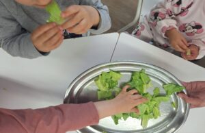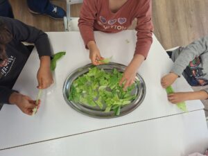 Un cop a la classe, vam començar a preparar l’amanida: primer vam rentar bé l’enciam, després el vam tallar i, finalment, hi vam afegir sal, oli i vinagre. Tots van participar en el procés amb moltes ganes.