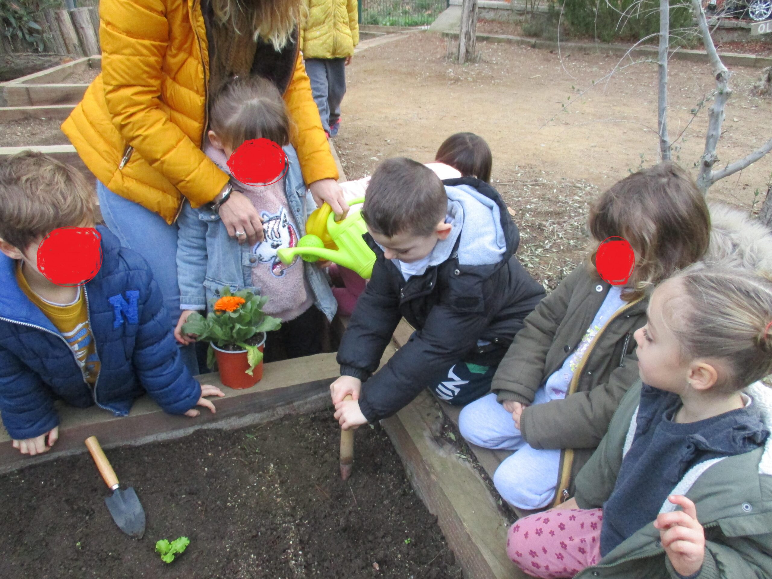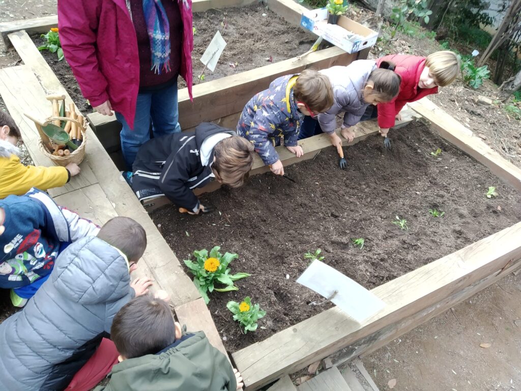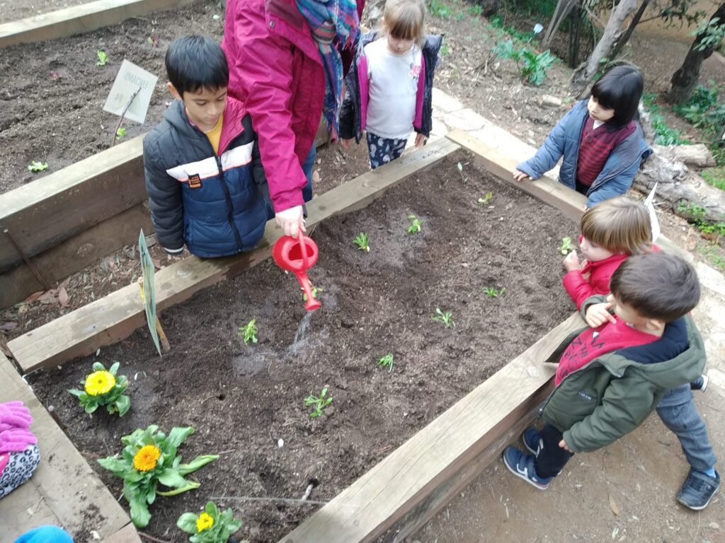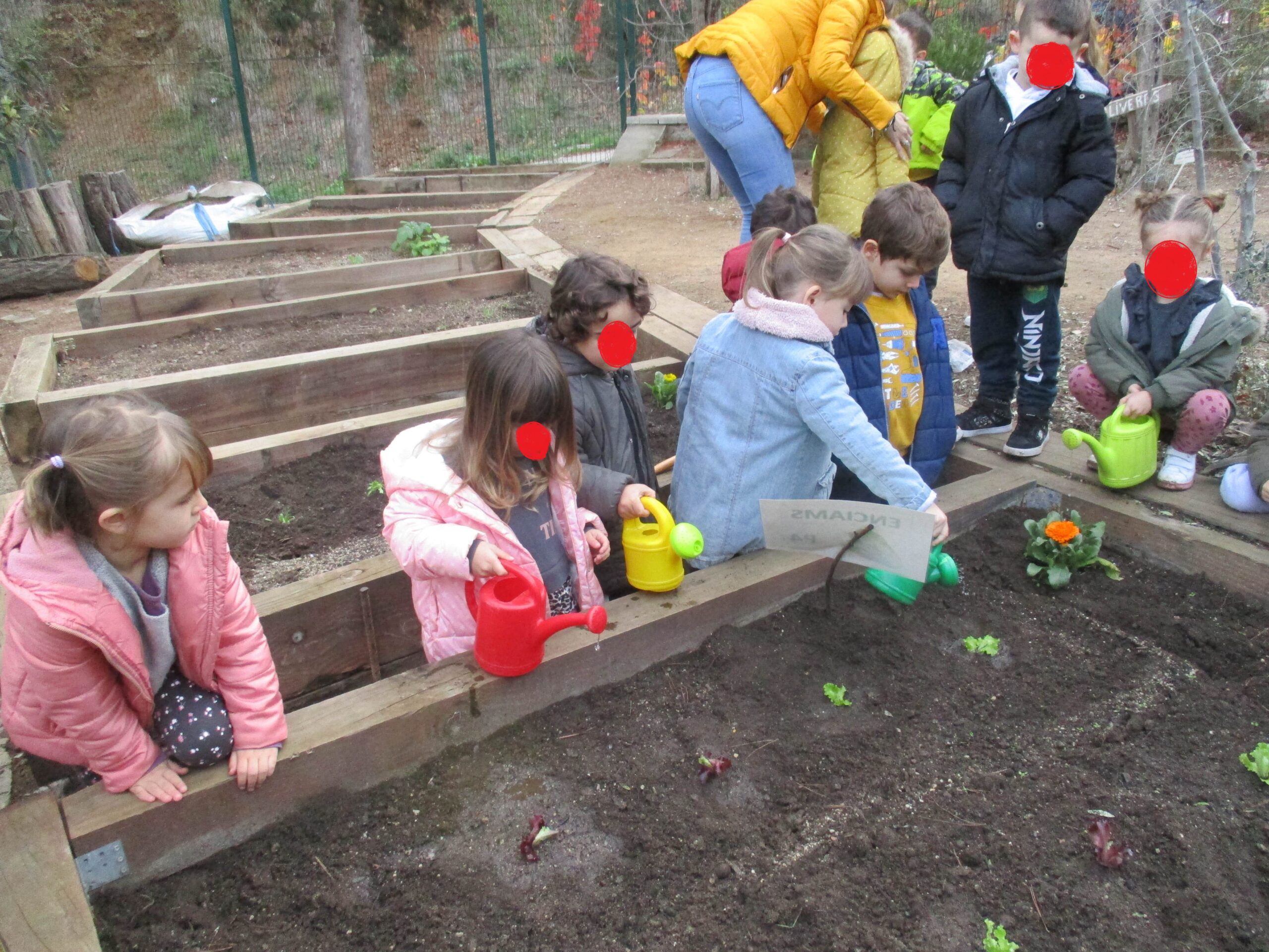 DURANT LA SETMANA PASSADA I EN DIFERENTS MOMENTS DEL DIA, PER TAL DE NO COINCIDIR AMB ALTRES GRUPS A L’HORT, TOTS ELS GRUPS D’EDUCACIÓ INFANTIL VAM ANAR A PLANTAR. ELS GRUPS DE P3 VAM PLANTAR ENCIAMS, P4 ENCIAMS LLARGS I ENCIAMS ROURE I P5 BLEDES I ESPINACS. A MÉS A MÉS, TOTS ELS GRUPS VAM PLANTAR CALÈNDULES. QUAN VAM ARRIBAR VAM REMOURE LA TERRA AMB EL RASCLET. UN COP PREPARADA LA TERRA VAM FER ELS FORATS AMB ELS PLANTADORS I VAM POSAR ELS PLANTERS. EN ACABAR, VAM REGAR-HO TOT.💦💦💦🌻🌱