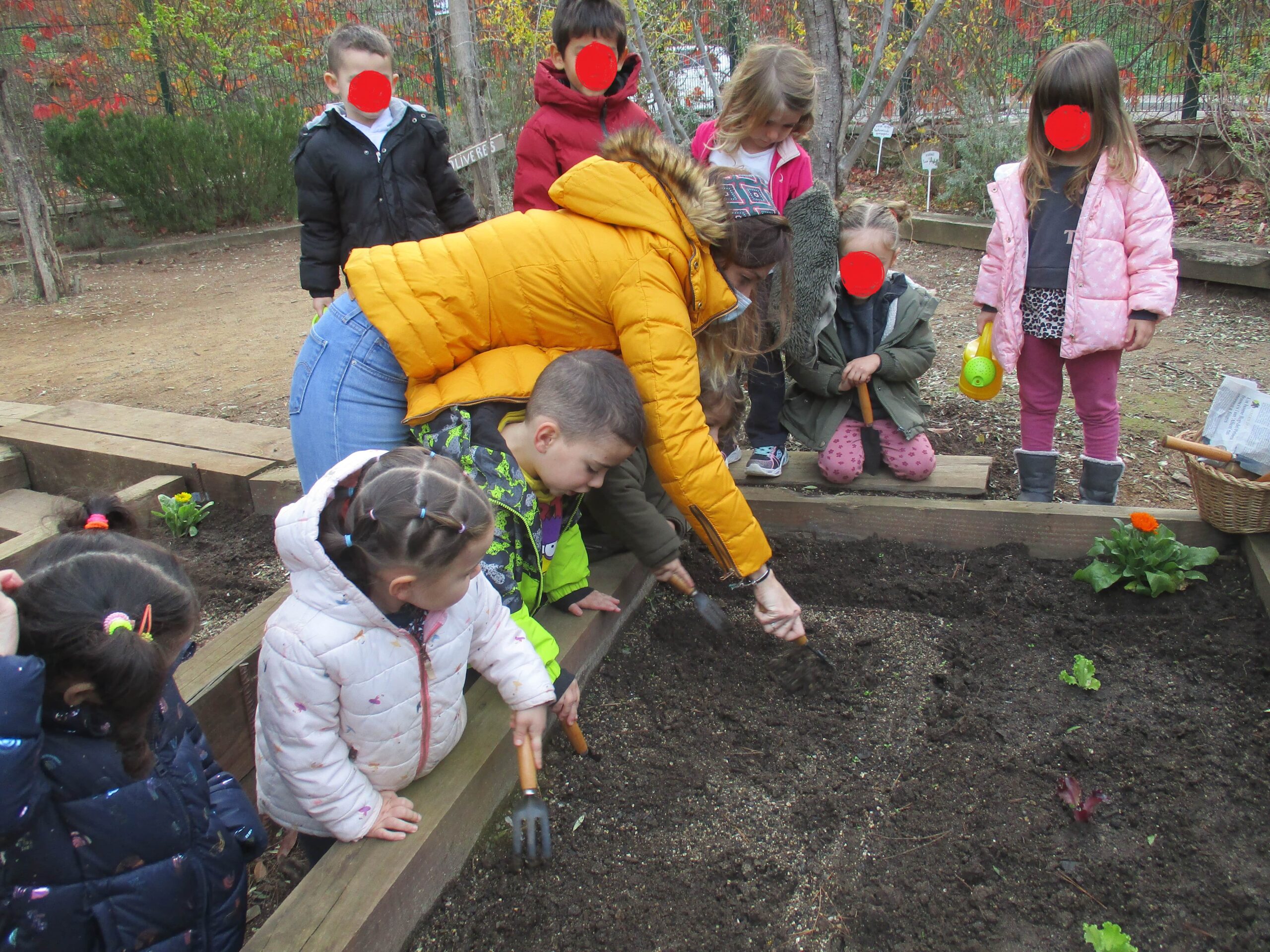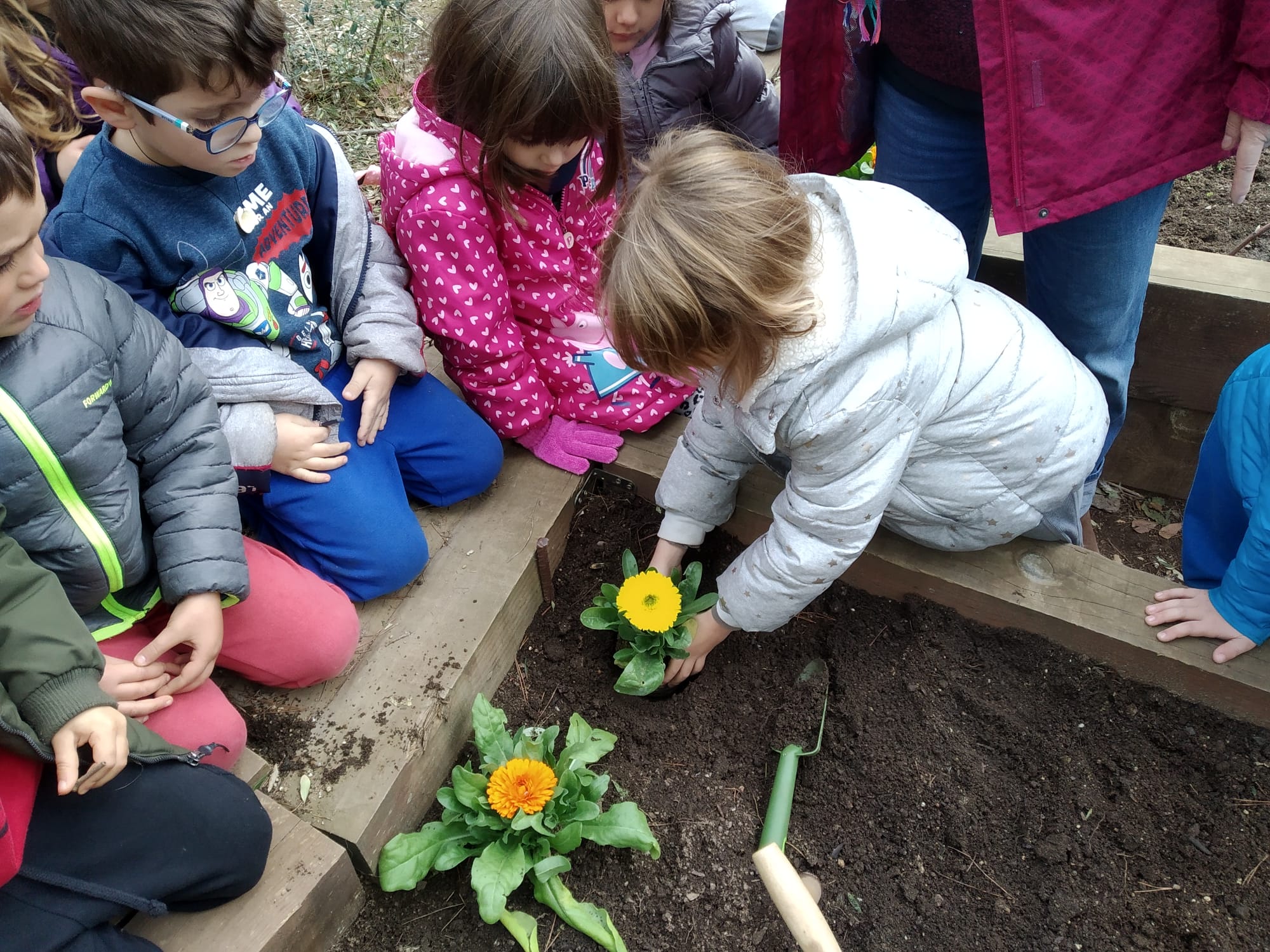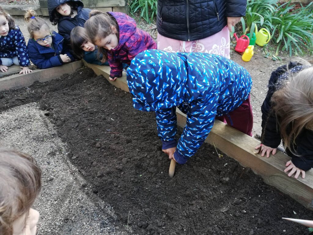 DURANT LA SETMANA PASSADA I EN DIFERENTS MOMENTS DEL DIA, PER TAL DE NO COINCIDIR AMB ALTRES GRUPS A L’HORT, TOTS ELS GRUPS D’EDUCACIÓ INFANTIL VAM ANAR A PLANTAR. ELS GRUPS DE P3 VAM PLANTAR ENCIAMS, P4 ENCIAMS LLARGS I ENCIAMS ROURE I P5 BLEDES I ESPINACS. A MÉS A MÉS, TOTS ELS GRUPS VAM PLANTAR CALÈNDULES. QUAN VAM ARRIBAR VAM REMOURE LA TERRA AMB EL RASCLET. UN COP PREPARADA LA TERRA VAM FER ELS FORATS AMB ELS PLANTADORS I VAM POSAR ELS PLANTERS. EN ACABAR, VAM REGAR-HO TOT.💦💦💦🌻🌱