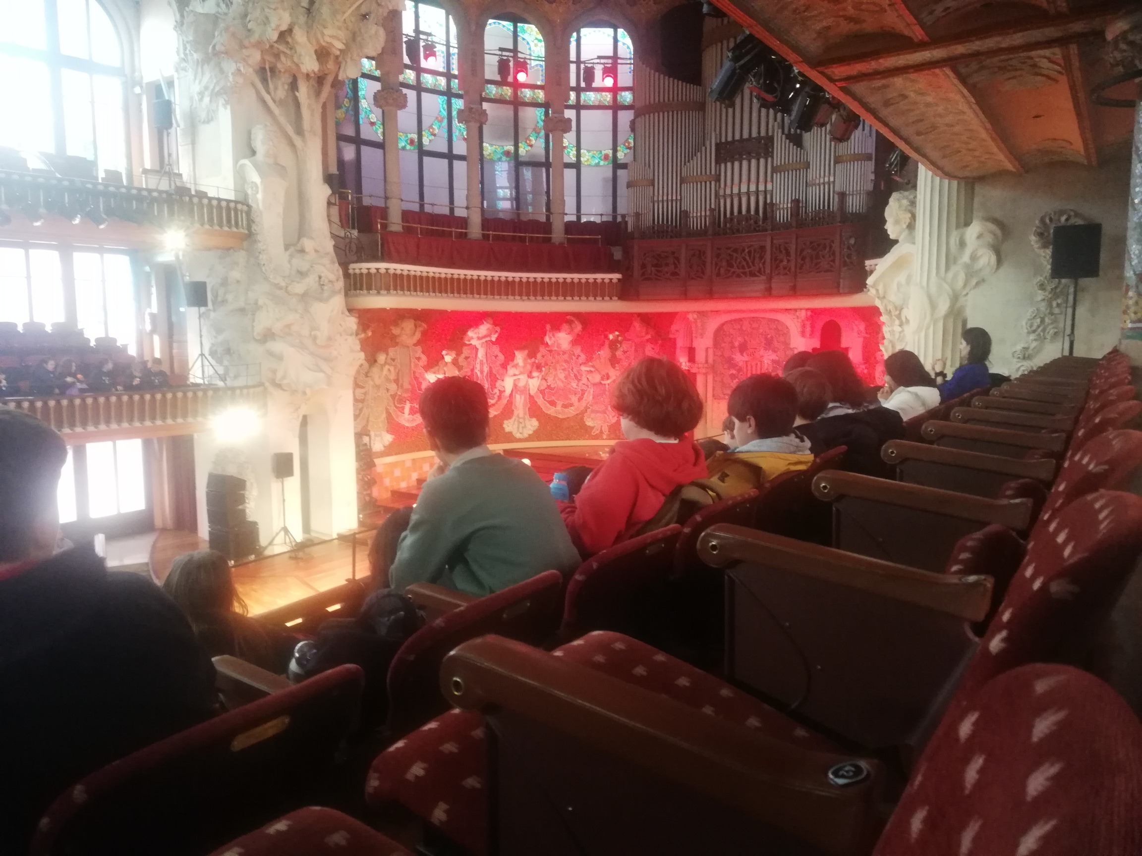 Aquest dijous 9 de gener, els infants de 6è han assistit al concert Músiques del Món al Palau de la Música Catalana. En aquest espectacle, cinc músics interpreten “a capella” cançons dels cinc continents utilitzant només la seva veu com a únics instruments. Els alumnes han quedat molt sorpresos en descobrir que només amb la veu es poden produir timbres tan variats com els d’un trombó, una balalaika o un didjeridú.
