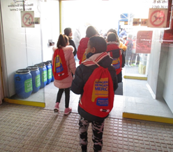 FINALMENT, VAM MARXAR DEL MERCAT MOLT CONTENTS AMB LA NOSTRA BOSSA, QUE CONTENIA UN PLÀTAN I UNA ENGANXINA PER RECORDAR: “CAL MENJAR SA, MENJAR DE MERCAT”