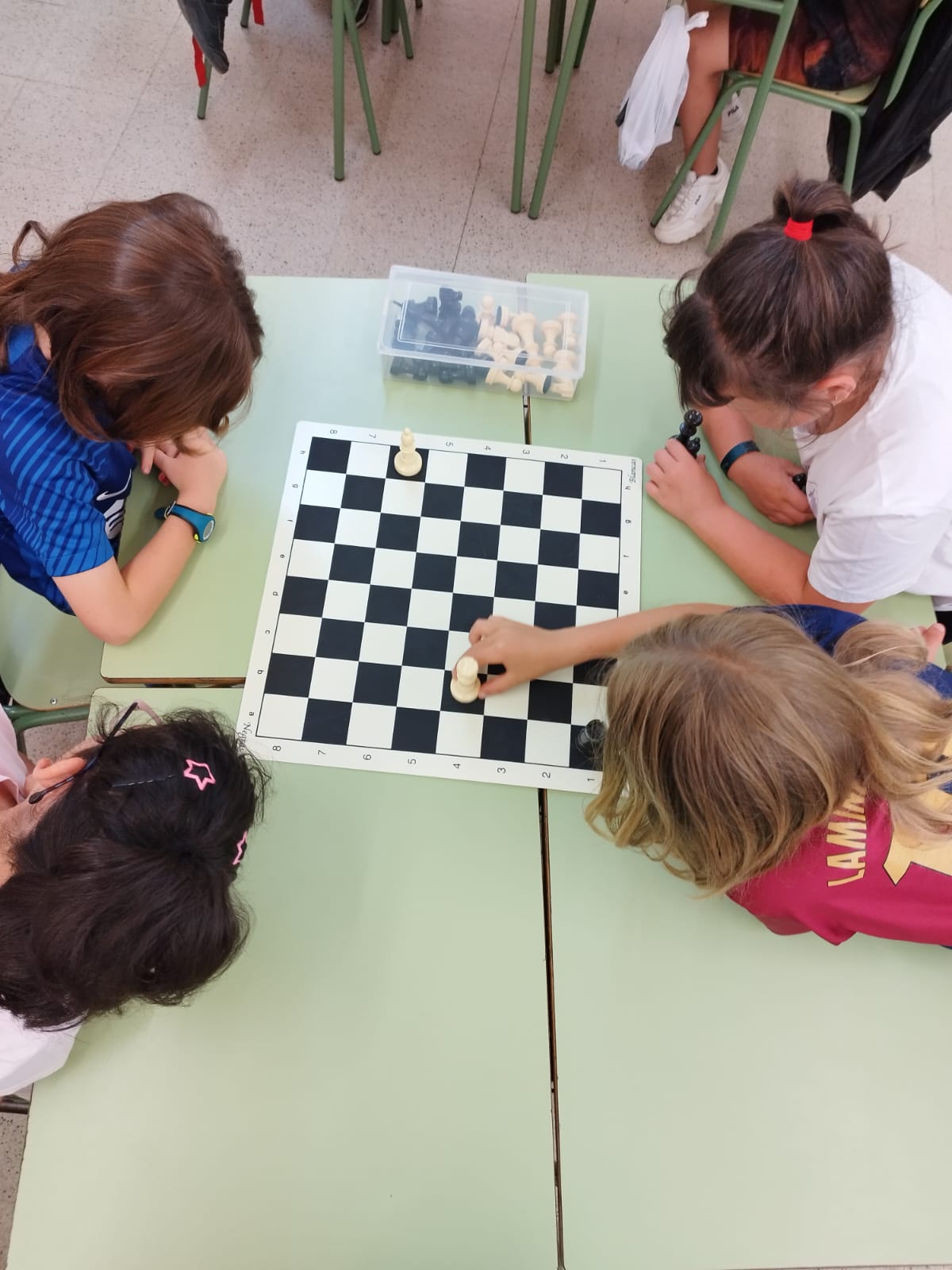 Finalment, cada infant va tenir l’oportunitat de posar en pràctica tot el que havia après amb una partida completa, tot gestionant el seu temps, pensant les jugades i respectant el joc de l’altre.