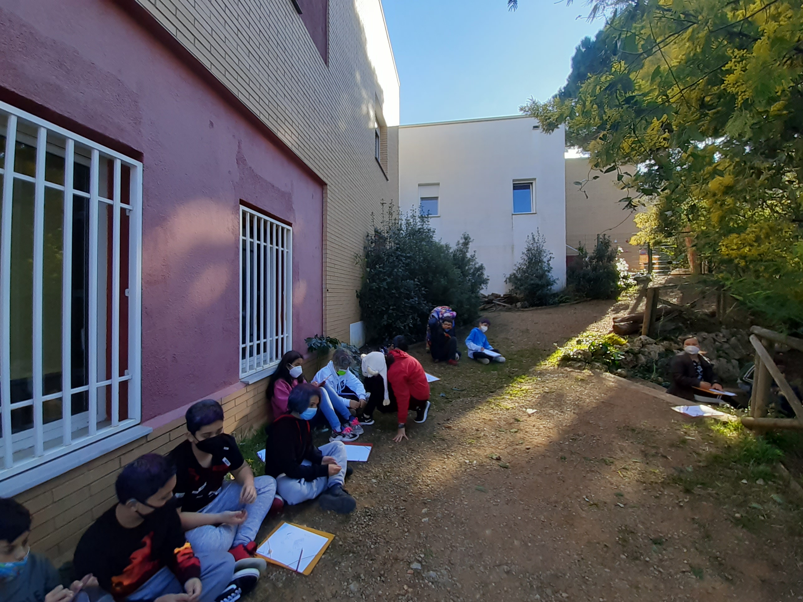 També hem observat els animalons de la bassa i els canvis que els arbres i les plantes fan durant els mesos d’hivern. Per exemple, un dels nostres arbres preferits és la mimosa, la qual fa una floració groguenca molt espectacular. Hem gaudit de la mimosa i hem dibuixat al natural les seves fulles, flors, etc.