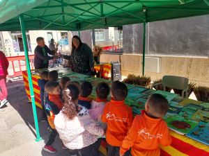 Aquest any per St. Jordi els alumnes d’infantil, cicle inicial i mitjà, hem anat a la biblioteca del poble per conèixer de més a prop tot l’entorn dels llibres i hem pogut llegir una estona i escoltar les lectures d’altres companys de l’escola, després a la tornada hem passat per la paradeta de llibres i roses que l’AFA havia preparat al carrer.