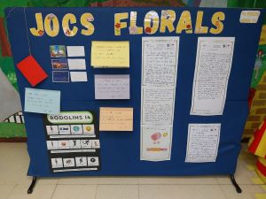 A la tarda tot el centre va celebrar la diada de St. Jordi al pati de l’escola amb els Jocs Florals, on es van llegir els textos que havien elaborat els diferents cicles i també és van donar premis per a les produccions guanyadores dels cicles mitjà i superior.