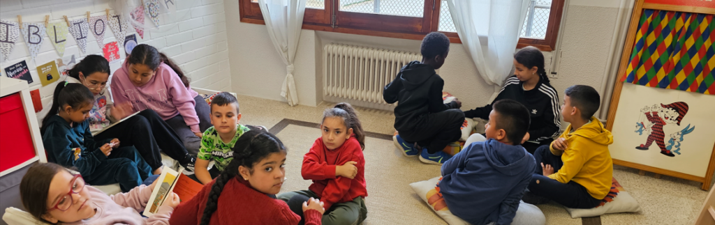 Escola 4t i 2n Companys lector Sant Jordi 25 04 25 admin25/04/25 Els grans orienten en la lectura als petits, home! Ja tenen una experiència!