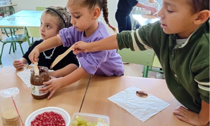 Tot l’alumnat de l’escola Gaudí hem preparat les galetes i els “pinxitos” de fruita, per tal de poder esmozar més tard. Els i les més grans, hem ajudat als més petits per tal d’ensenyar-los a fer-ho el millor possible. Tenir responsabilitat ha sigut molt edificant!