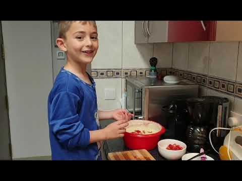 El Mario s’ha convertit en un petit xef i ha preparat un pa de pessic amb maduixes per menjar, quan es refredi, a casa en el dia del pare. Que aquest pastís serveixi per felicitar avui a tots els joseps i josepes, peps i pepes.