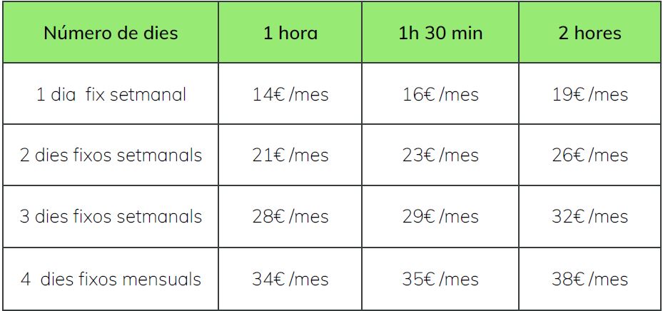• Hores dies esporàdics: 4€/hora.