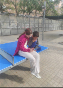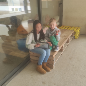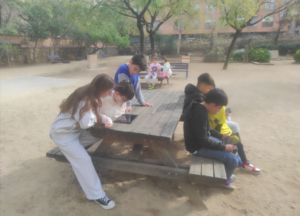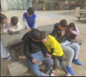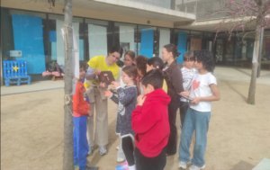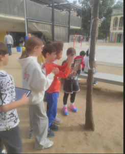 Tots els infants de l’escola han gaudit dels contes capturant els QR penjats als arbres del pati..