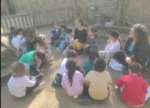 Per finalitzar aquest 2n. trimestre, hem volgut donar la benvinguda a la primavera fent una trobada tota l’escola al pati per dibuixar cada infant l’arbre de la seva classe. Els infants d’I5 han gaudit molt fent un mural conjunt dels seus arbres.