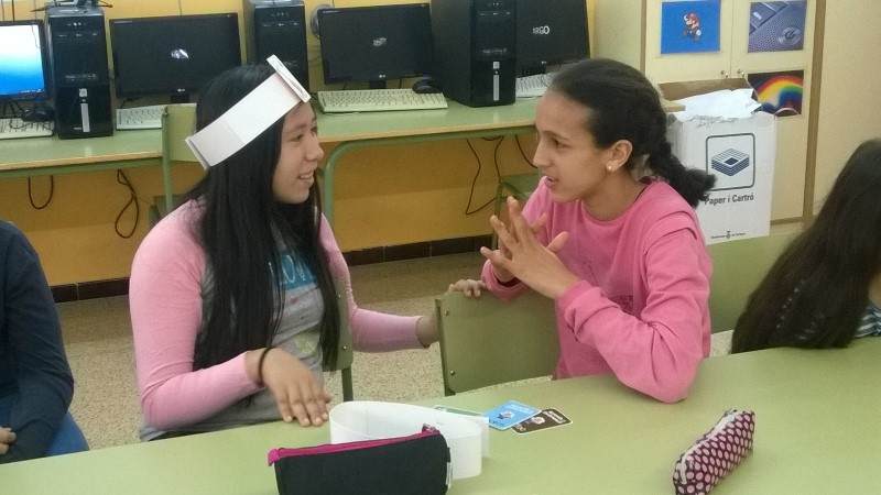 Today in English, in the oral class, the students have played the game “Guess the word on forehand” where you have to act or describe clues to help guess the word that is in the card. It is a quick and fun game used to learn to ask questions and use vocabulary. They have enjoyed