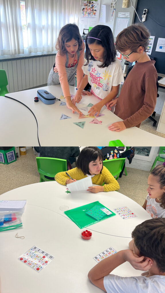 En diferents racons practiquem sumes, restes, multiplicacions i divisions conquerint territoris, jugant al bingo o inclús resolent un triòmino!