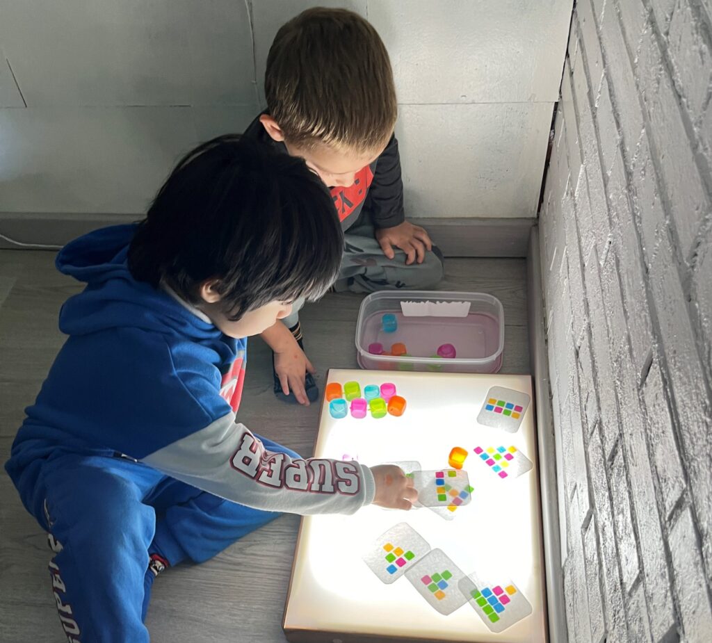 A l’ambient de llum, descobreixen el joc de colors, ombres i formes, explorant conceptes científics de manera pràctica i lúdica.