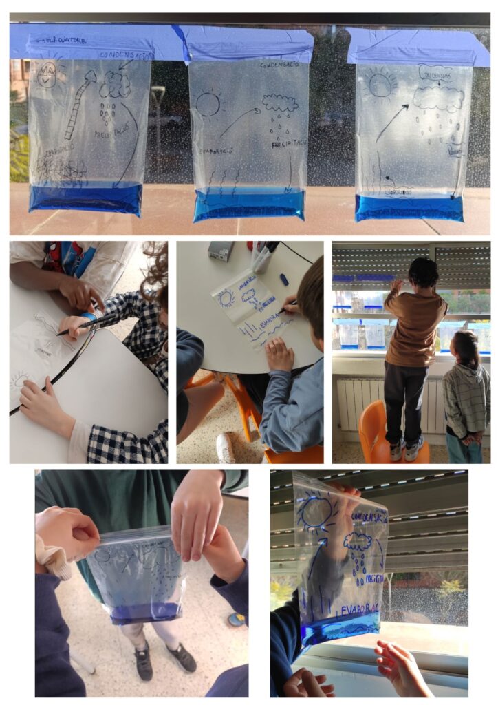 Per conèixer i entendre millor el cicle natural de l’aigua, aquesta setmana hem fet una sessió d’experimentació per poder observar i comprendre el recorregut que fa l’aigua a la natura: evaporació, condensació, precipitació i retorn al medi natural.