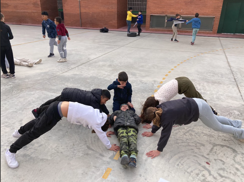Els alumnes de 5è fan de tutors i tutores dels alumnes de 3r i a través d’activitats cooperatives i lúdiques es va creant un vincle i una estima que ajuda a millorar la convivència de tot l’alumnat.