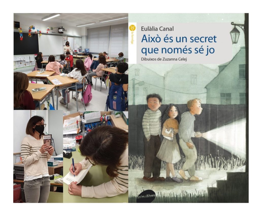 Avui dimarts 27 d’abril, a 4t, ens ha visitat l’Eulàlia Canal. Ella és l’autora del llibre ” Això és un secret que només sé jo” que l’hem llegit durant el segon trimestre. Hem gaudit molt de la seva visita, de totes les seves explicacions sobre el procés de creació abans d’escriure els seus relats, ens