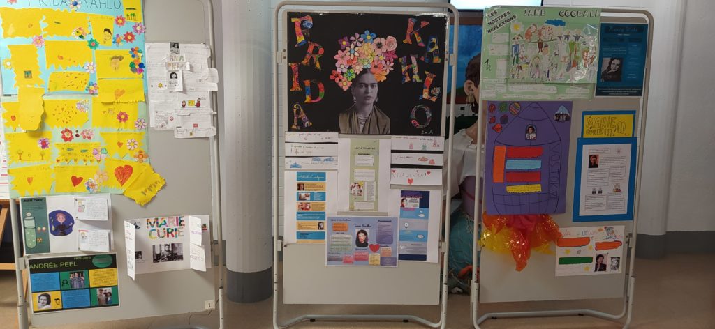 L´alumnat de l´escola durant el mes de març van estar treballant la biografia de diferents dones que han estat rellevants en el món. Educació Infantil i 1r de primària van treballar Jane Goodall L´alumnat de 2n a Frida Kahlo 3r de primària Marie Curie Els més grans de l´escola; Andree Peel, Ana Frank, Valentina Tereshkova,