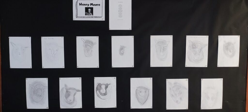 Seguim treballant els artistes que apareixen al Cantània aquest curs. Aquesta vegada ha tocat el torn de Henry Moore. Hem copiat el dibuix d’un be fet per ell. La veritat és que som uns grans artistes ja que ens han sortit uns dibuixos d’allò més bonics.