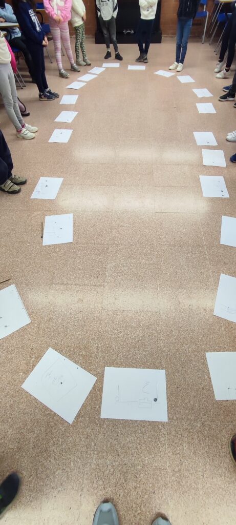 Els nens i nenes de primer estem treballant la negra, la blanca i els seus silencis. Després d’inventar i apuntar un ritme de 4 pulsacions, els hem interpretat tots alhora mentre anem girant al voltant del cercle.