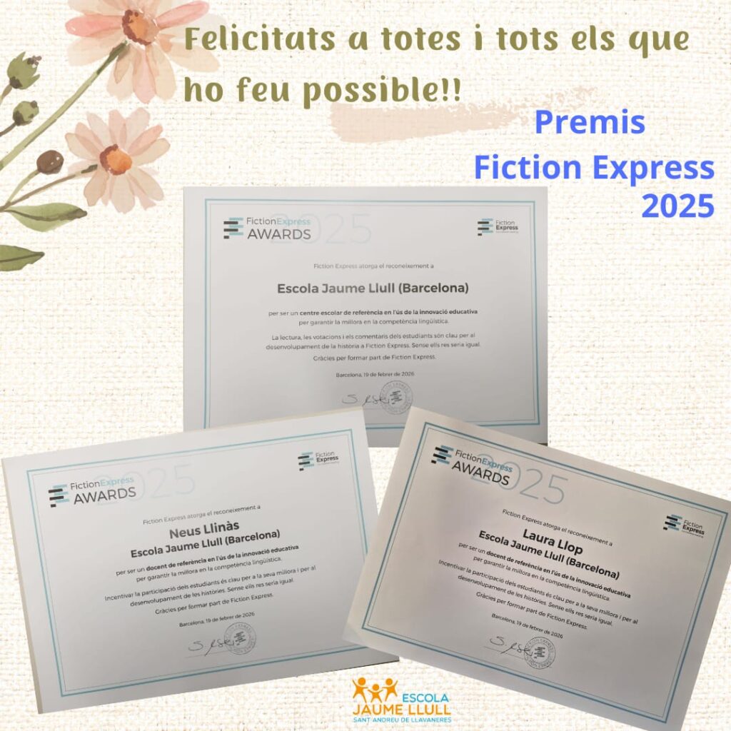 L’Escola Jaume Llull ha tornat a fer història. Per quart any consecutiu, hem estat reconeguts pel nostre rendiment excepcional en comprensió lectora i competència lingüística en català a la plataforma Fiction Express. Aquest curs, el reconeixement ha estat doblement especial. A més del premi a l’excel·lència del centre, la plataforma ha guardonat dues de les