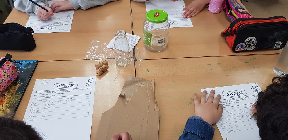 Aquest trimestre a medi, els nens i nenes de 4t treballarem i aprendrem tot allò que està relacionat amb l’aigua, (els estats de l’aigua, el cicle de l’aigua, les energies que estan relacionades amb l’aigua, la contaminació i el seu malbaratament…). Per començar, hem après que existeixen tres estats de la matèria: sòlid, líquid i