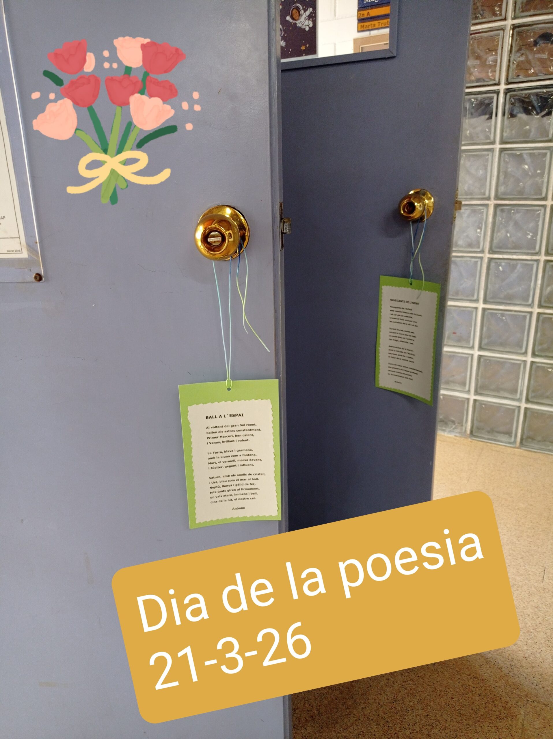 Dia de la poesia Feu un comentari / Per Esther Domingo / 27 de març de 2026 / Biblioteca General Portada El 21 de març és el dia de la poesia, a l´escola aquest curs l´hem celebrat dilluns 23 de març. Un any més l´alumnat es va trobar un poema al pom de la porta.