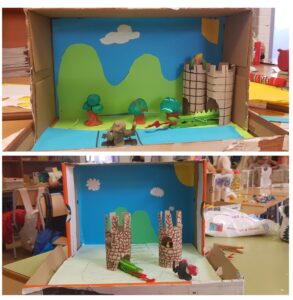 Aquest any hem celebrat Sant Jordi fent l’intercanvi de llibres i un taller amb material reutilitzable. Hem creat una representació de la llegenda de Sant Jordi!