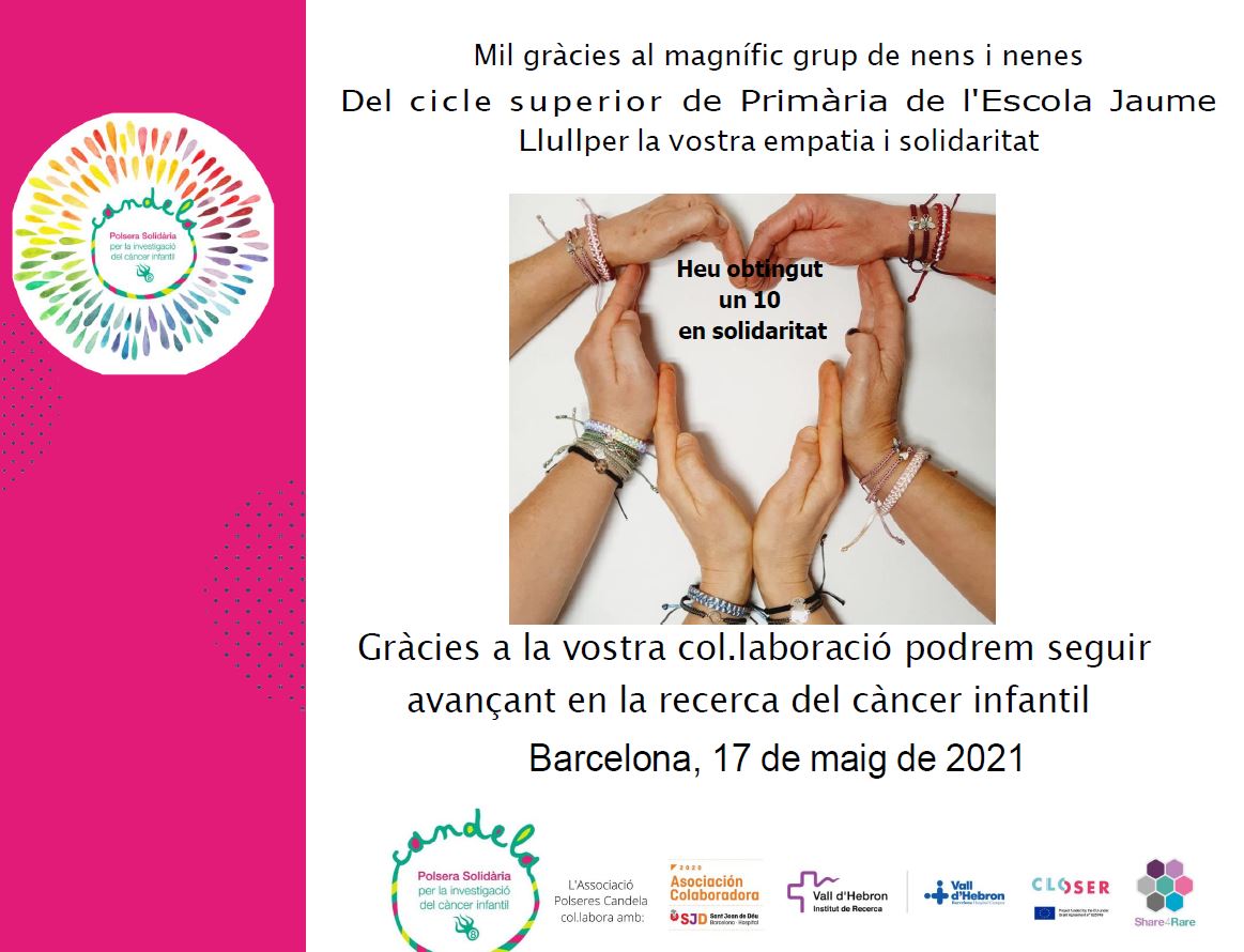 Una de les accions que estem duent a l´escola per recaptar diners i col·laborar en la recerca del càncer infantil, ha estat el taller de polseres Candela.