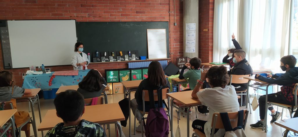 P5 “Prenc fruita cada dia”. 2n de primà ria, “ L´esmorzar és clau” 4t de primà ria ” Els aliments la nostra energia” 6è de primà ria ” Menja bé, et sentirà s bé”.