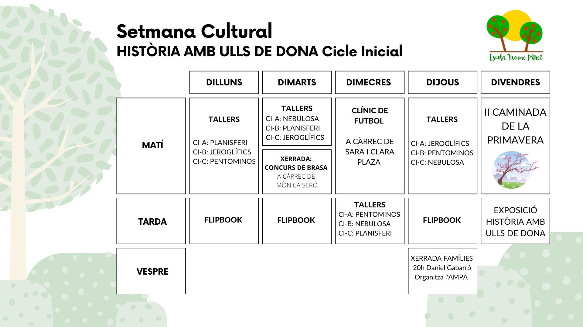 Trobareu un cartell de les activitats de cada cicle.