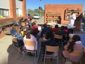El passat dia 2 de desembre, l’Olga Màgic. Ens va explicar que la química està molt present a les nostres vides. Els químics treballen en un laboratori (farmacèutic, mèdic, alimentari, cosmètic…) porten bata blanca i són molt curosos protegint-se els ulls amb unes ulleres especials. Ella treballa en un laboratori que fa productes pel tractament del cabell, sabó, gel hidroalcohòlic… i han d’estar sempre investigant per millorar els productes.