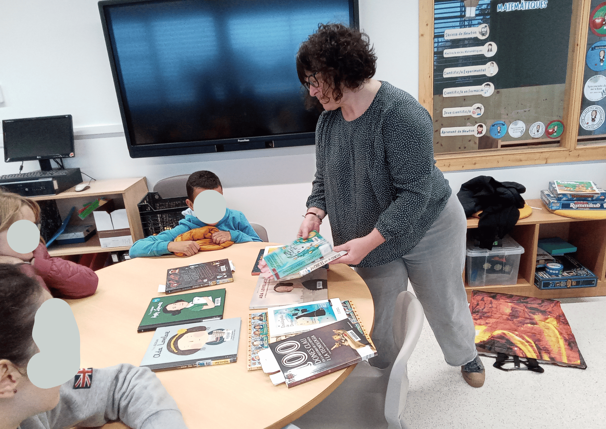 Els infants van escoltar amb atenció i van descobrir com l’Ada Lovelace va marcar un abans i un després en el camp de la ciència. A més, la Jordina ens va deixar diversos llibres relacionats amb aquest tema que podrem consultar a la classe durant els pròxims dies per seguir aprenent i aprofundint en la història de les dones que han canviat el món amb els seus coneixements.