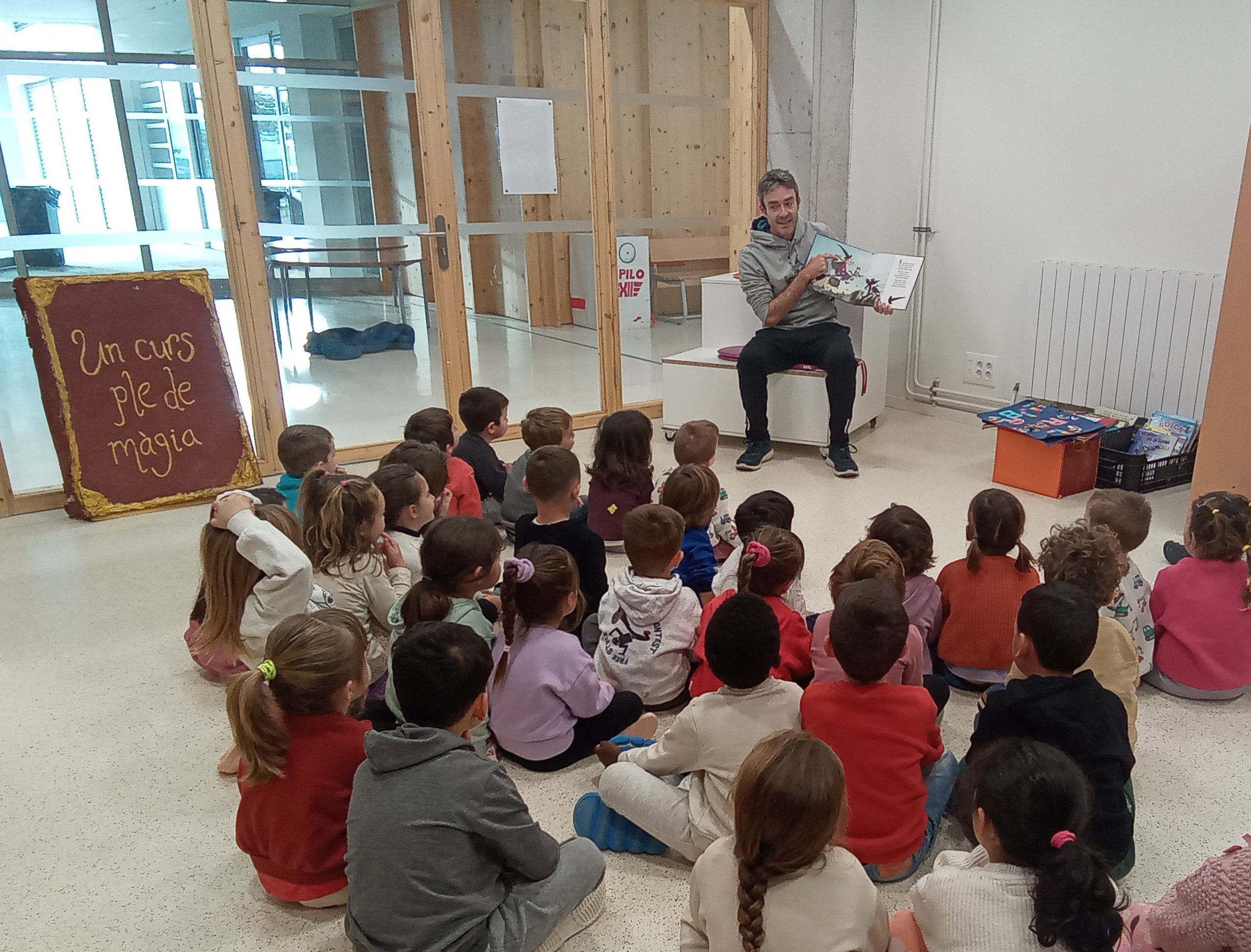 La seva visita va omplir la biblioteca d’il·lusió, curiositat i moments compartits que els nens i les nenes van gaudir intensament. Escoltar un pare llegint, implicant-se i donant vida al relat, va convertir l’activitat en una experiència única per als petits lectors.