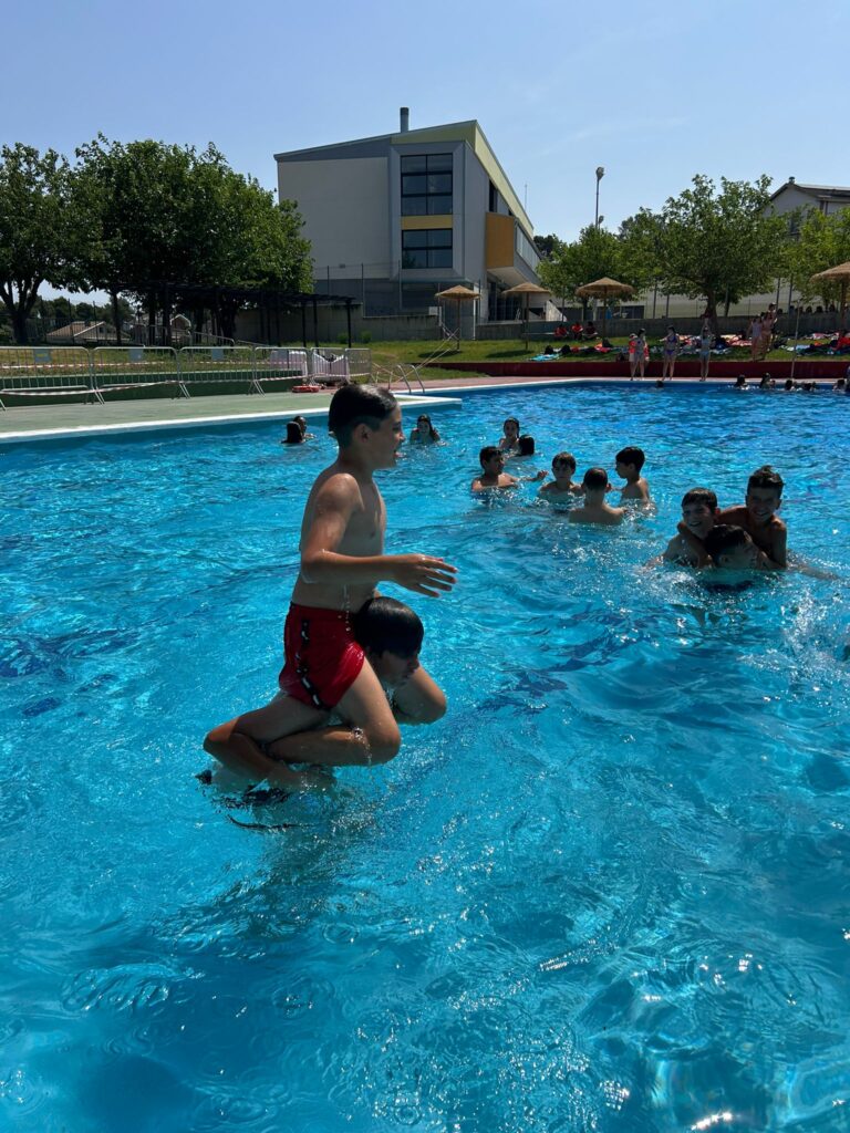 Després de gaudir d’un matí ple de jocs, reptes i rialles, la jornada va acabar d’una manera refrescant i molt esperada: tots a la piscina! 💦 Un moment de relax i diversió per tancar una experiència enriquidora que, de ben segur, molts recordaran amb un gran somriure.