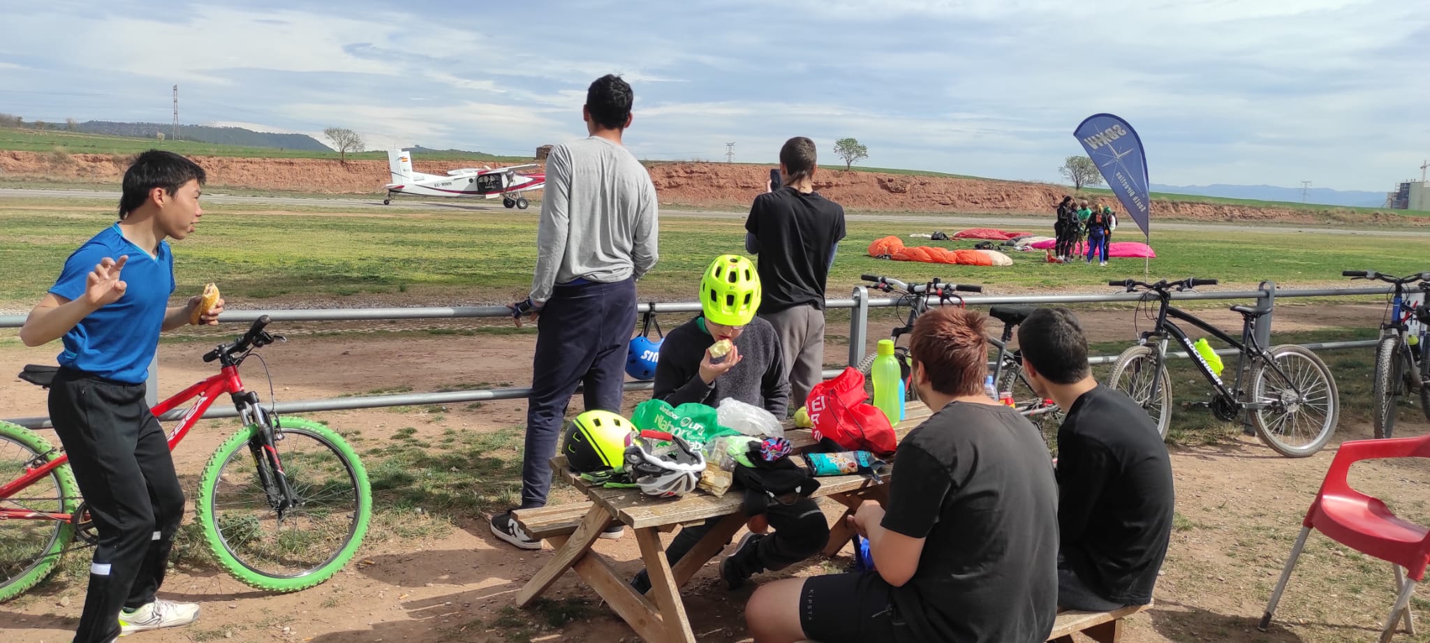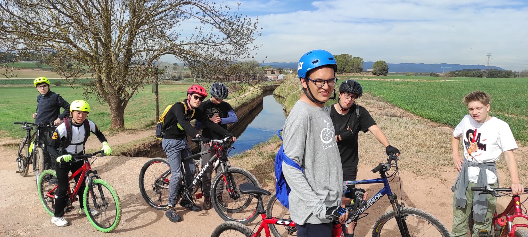 Avui divendres 24 de març, una bona colla de nois de TVA han fet una bicicletada pel bell entorn, verd i florit, que envolta l’escola. Com autèntics ciclistes, s’han ben equipat amb la indumentària corresponent i han sortit de bon matí direcció als Aiguamolls de la Bòbila. Han fet parada al Camp de Vol per recuperar energia i, on han pogut veure de ben a prop enlairar-se els avions i aterrar els paracaigudistes. Han continuat la ruta cap a Sant Iscle fins a arribar, de nou, a l’escola.