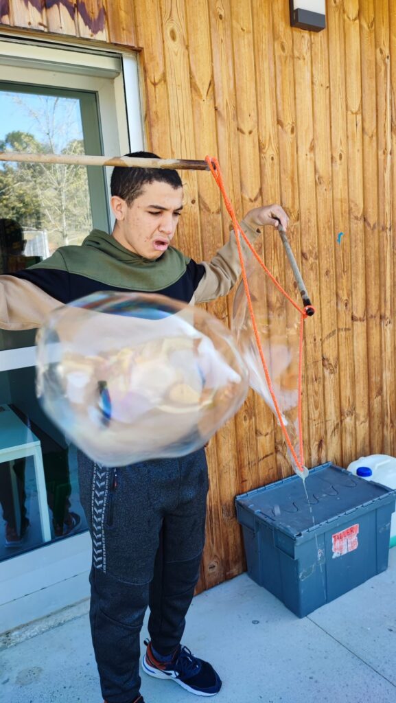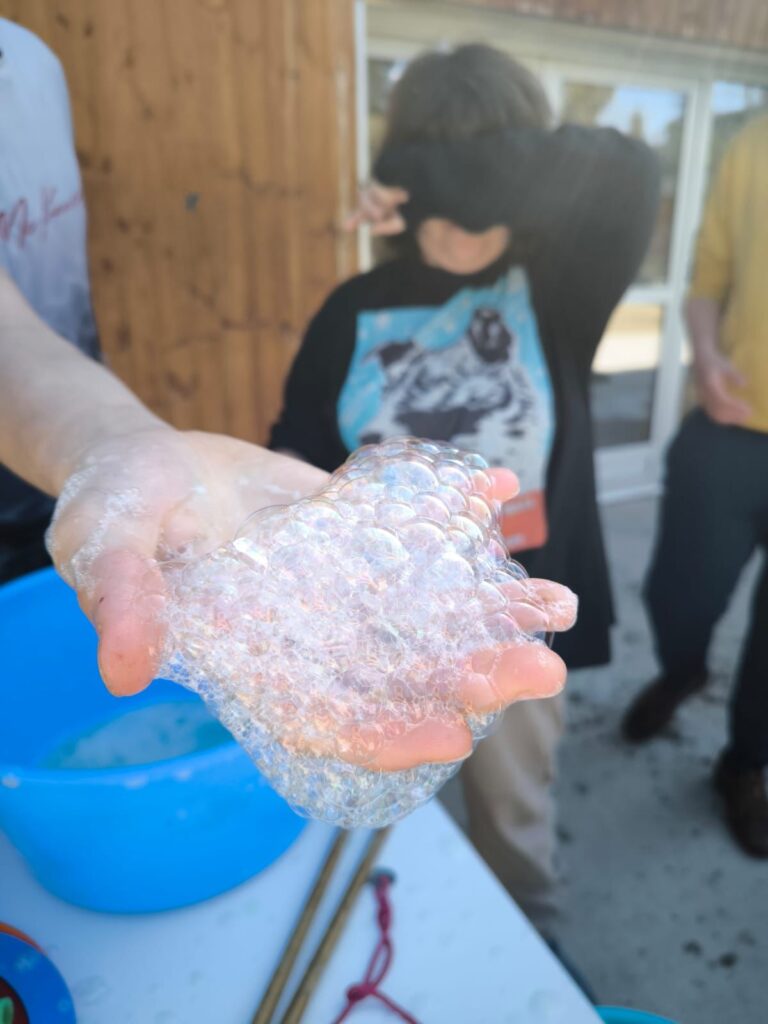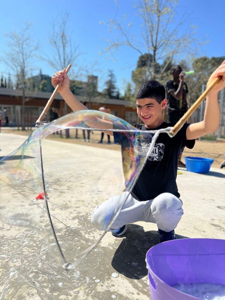 I quan arriba el bon temps… la màgia continua a l’aire! L’Albert també ens ofereix tallers de bombolles de sabó 🫧, una activitat visual, sensorial i molt engrescadora que entusiasma a petits i grans.